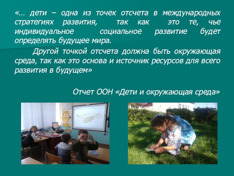 Слайд 2«… дети – одна из точек отсчета в международных стратегиях развития,