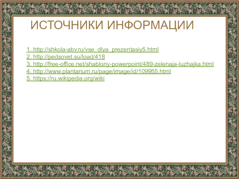 Это сайт презентаций, где можно хранить и обмениваться своими презентациями, докладами, проектами, шаблонами в формате PowerPoint с другими пользователями. Мы помогаем школьникам, студентам, учителям, преподавателям хранить и обмениваться учебными материалами.