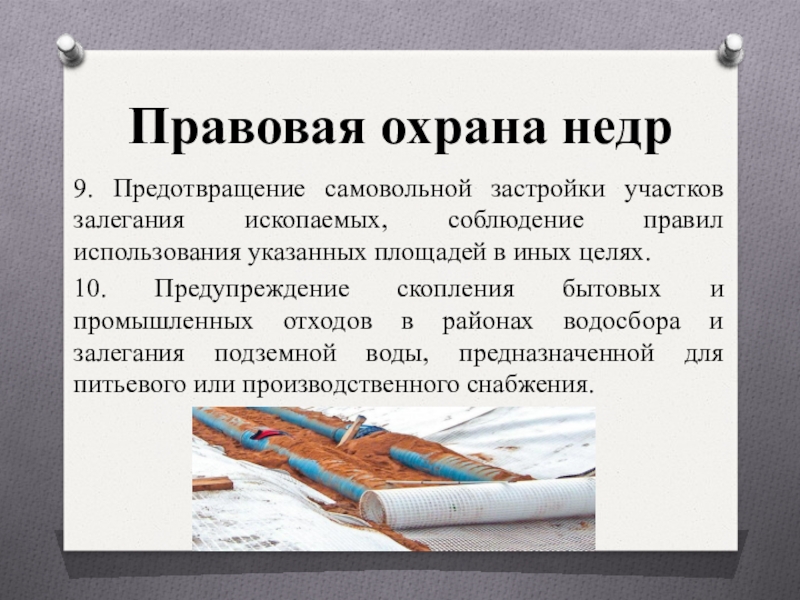 9. Предотвращение самовольной застройки участков залегания ископаемых, соблюдение