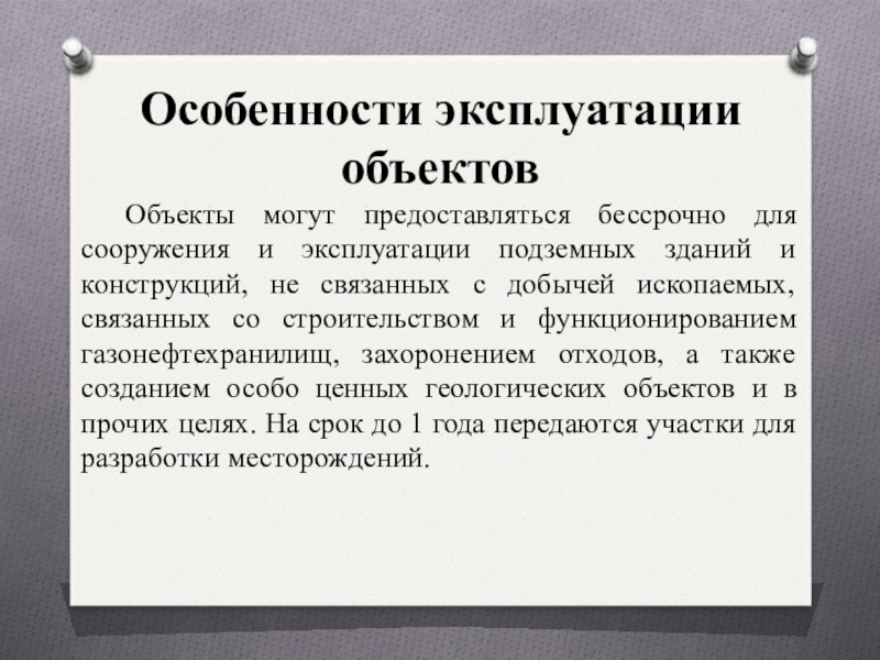 Объекты могут предоставляться бессрочно для сооружения и эксплуатации подземных