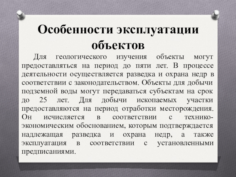 Для геологического изучения объекты могут предоставляться на период до