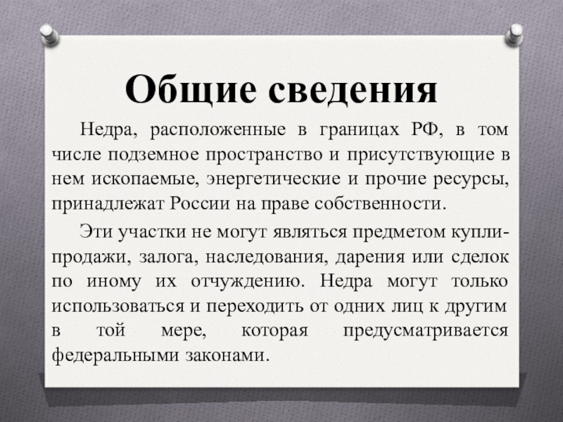 Эти участки не могут являться предметом купли-продажи, залога, наследования, дарения или сделок по иному их отчуждению. Недра могут только использоваться и переходить от одних лиц к другим в той мере, которая предусматривается федеральными законами.