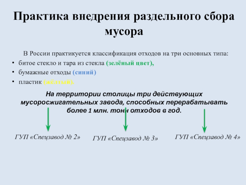 На территории столицы три действующих мусоросжигательных завода, способных перерабатывать более 1 млн. тонн отходов в год.