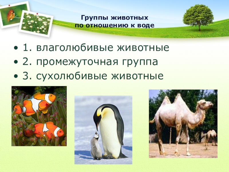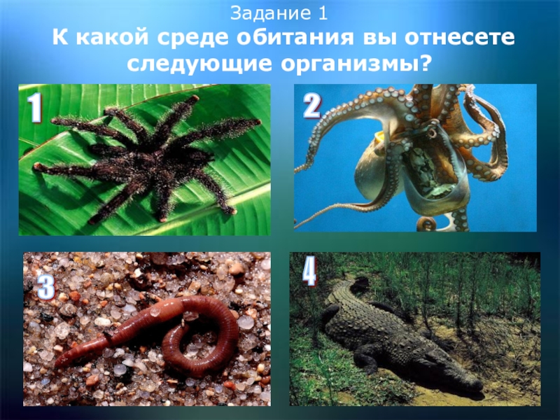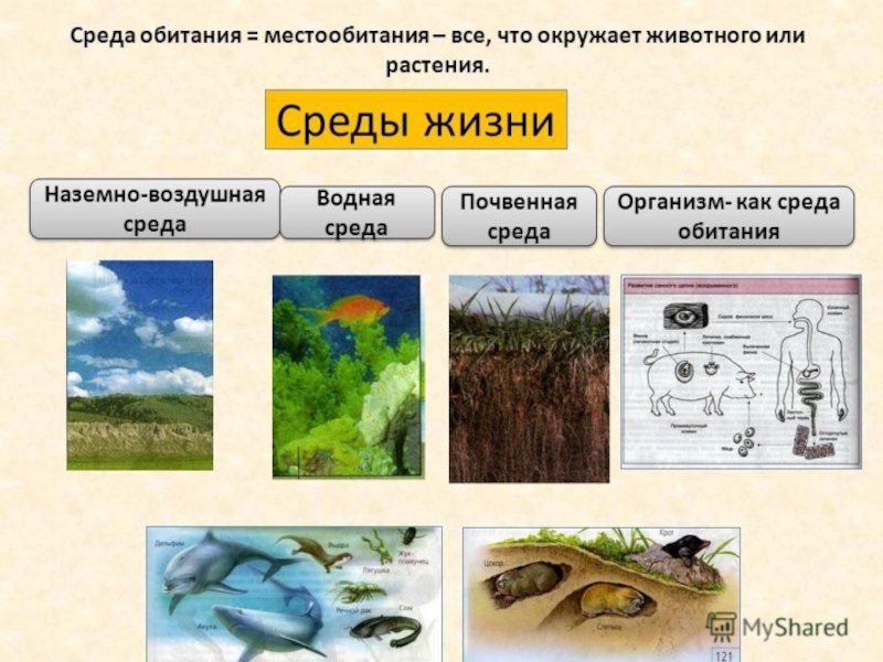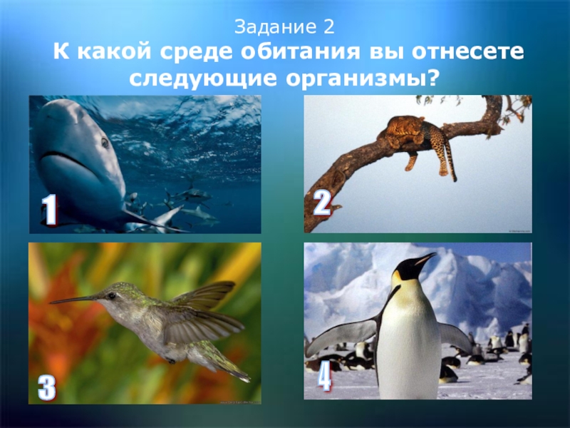 Поместите в соответствующую среду обитания животных или растения из предложенного списка.