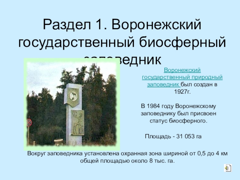 В 1984 году Воронежскому заповеднику был присвоен статус биосферного.