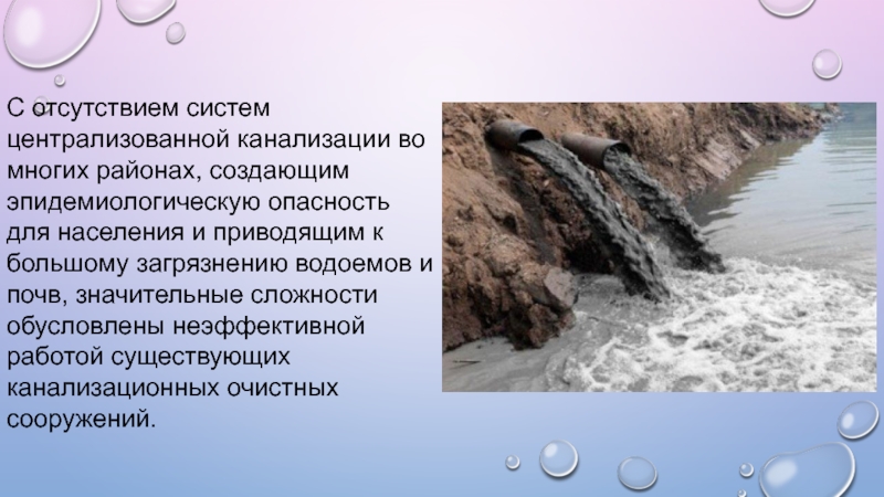 Слайд 6С отсутствием систем централизованной канализации во многих районах, создающим эпидемиологическую опасность
