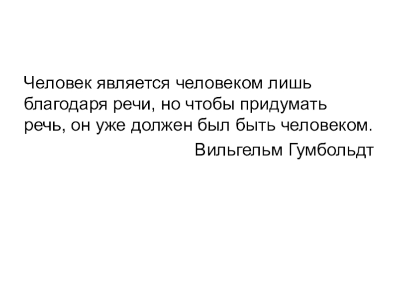 Слайд 2Человек является человеком лишь благодаря речи, но чтобы придумать речь, он