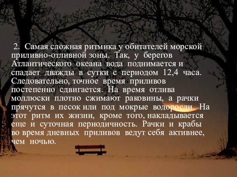 Слайд 18 2. Самая сложная ритмика у обитателей морской приливно-отливной