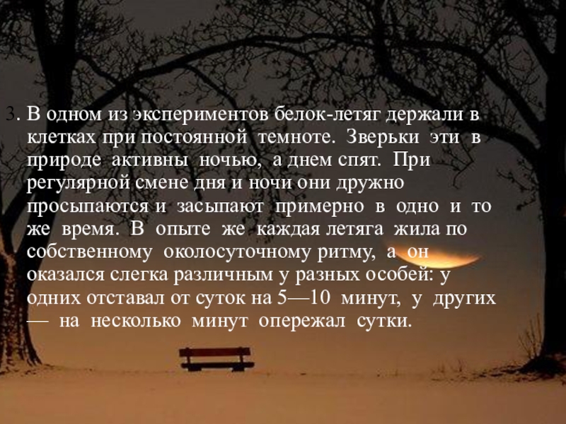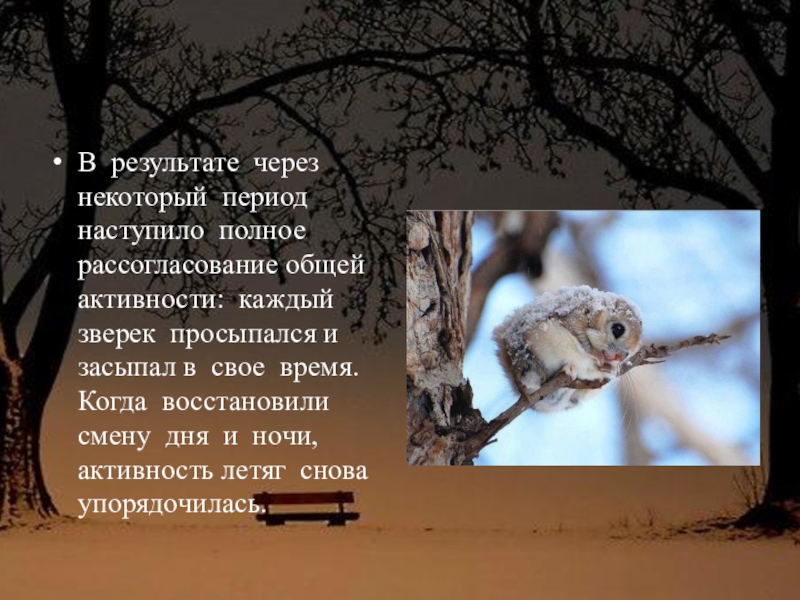 Слайд 193. В одном из экспериментов белок-летяг держали в клетках при постоянной