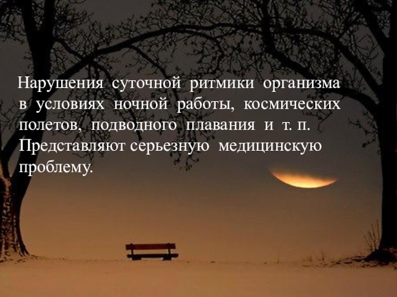 Слайд 10 Нарушения суточной ритмики организма в условиях ночной работы, космических