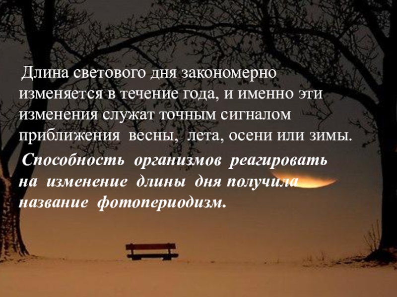 Слайд 14 Длина светового дня закономерно изменяется в течение года, и