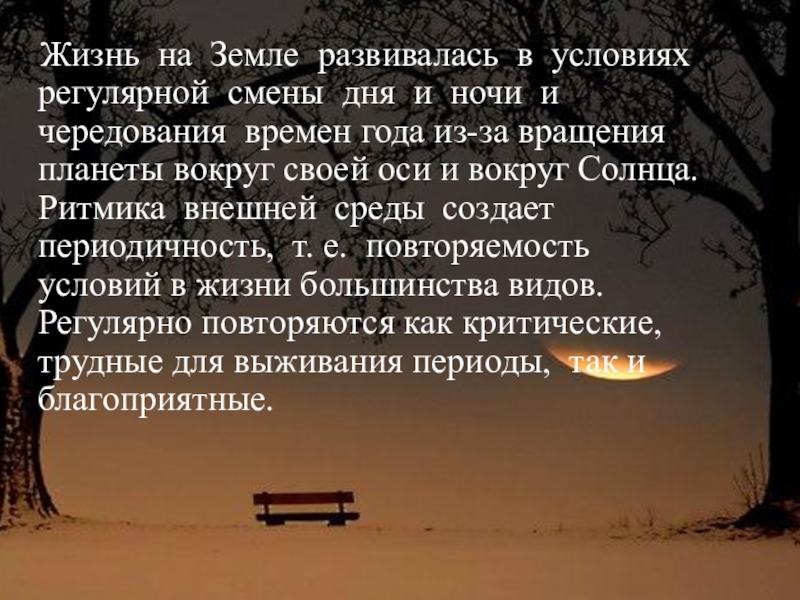 Слайд 2 Жизнь на Земле развивалась в условиях регулярной смены дня