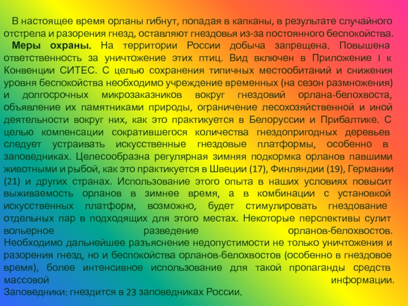 Слайд 10В настоящее время орланы гибнут, попадая в капканы, в результате случайного