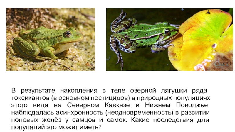 Слайд 7В результате накопления в теле озерной лягушки ряда токсикантов (в основном