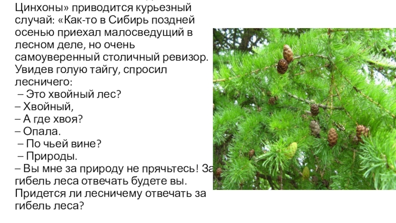 Слайд 5В книге С. Ивченко «Загадка Цинхоны» приводится курьезный случай: «Как-то в