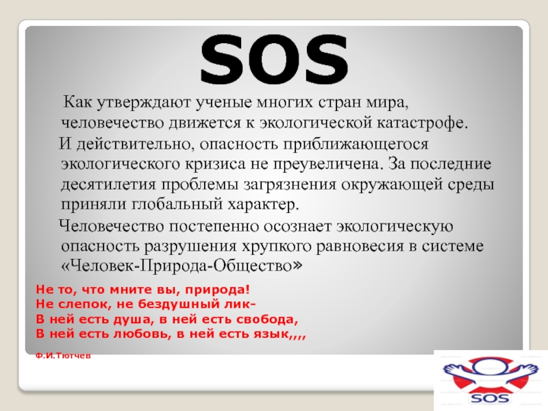 Человечество постепенно осознает экологическую опасность разрушения хрупкого равновесия в системе «Человек-Природа-Общество»