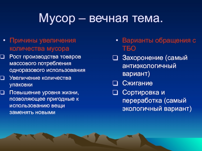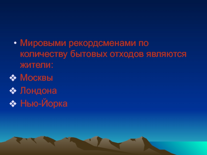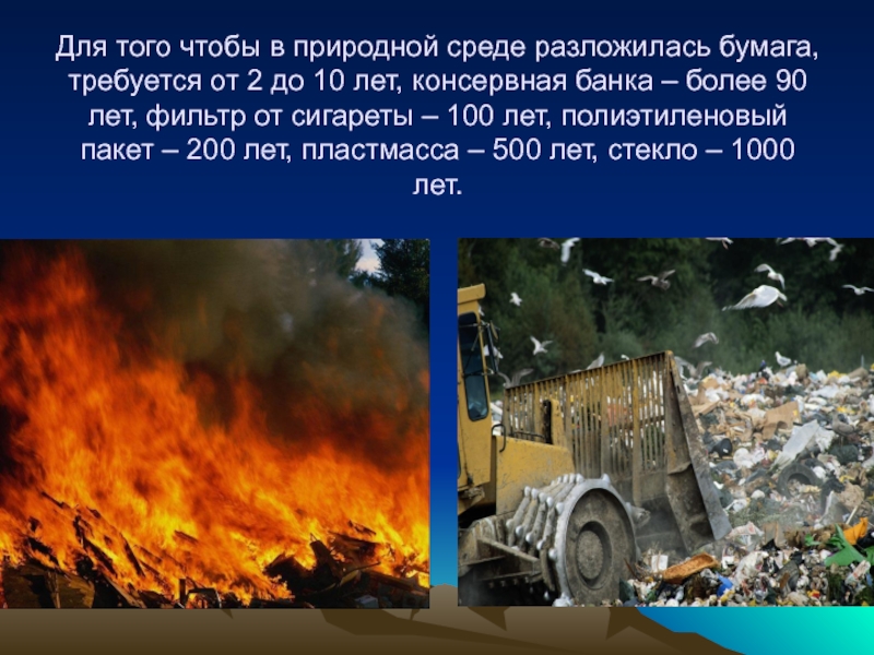 Мусор постепенно становится монстром цивилизации. При нынешнем состоянии экономики и культуры быта люди ещё долго обречены жить среди этих рукотворных памятников своей беззаботности.