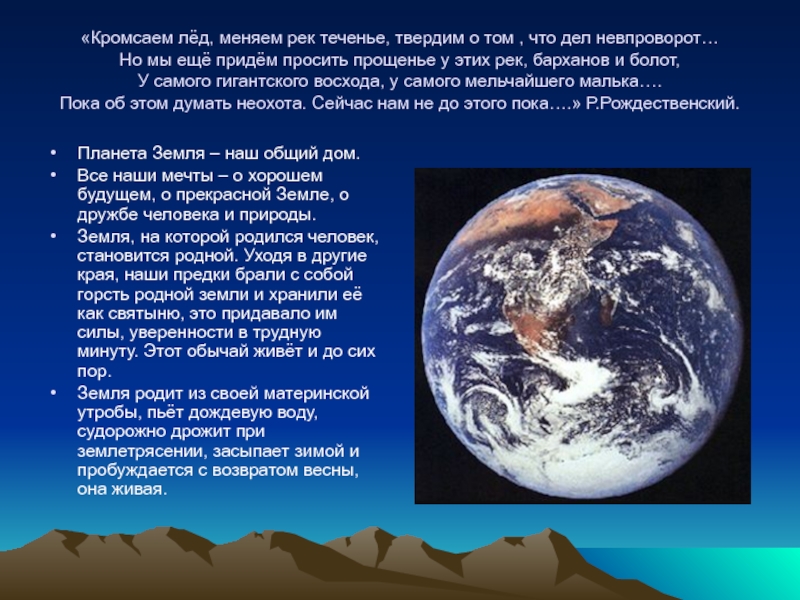 Все наши мечты – о хорошем будущем, о прекрасной Земле, о дружбе человека и природы.