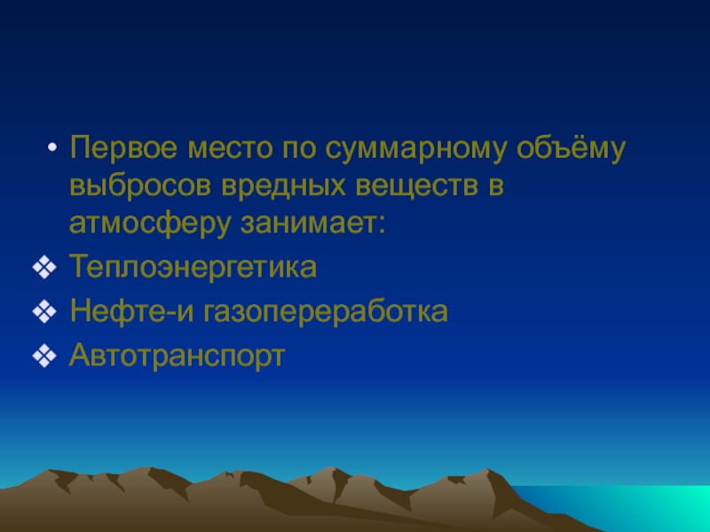 В атмосфере выбросы составляют более 20 млрд. т. углекислого газа, 700 т. пыли, 251 млн. т. серы