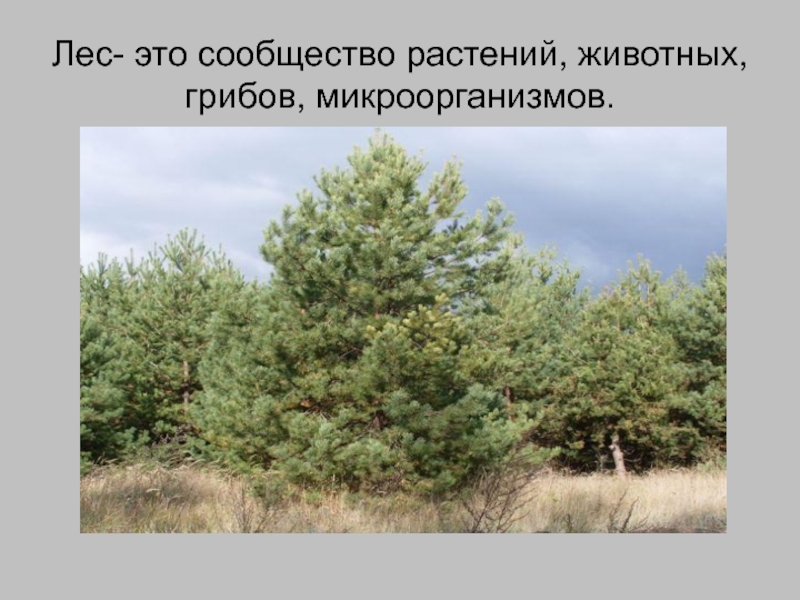 Слайд 5Лес- это сообщество растений, животных, грибов, микроорганизмов.