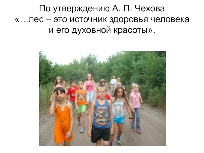 Слайд 18По утверждению А. П. Чехова «…лес – это источник здоровья человека и