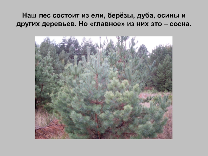 Слайд 3Наш лес состоит из ели, берёзы, дуба, осины и других деревьев.