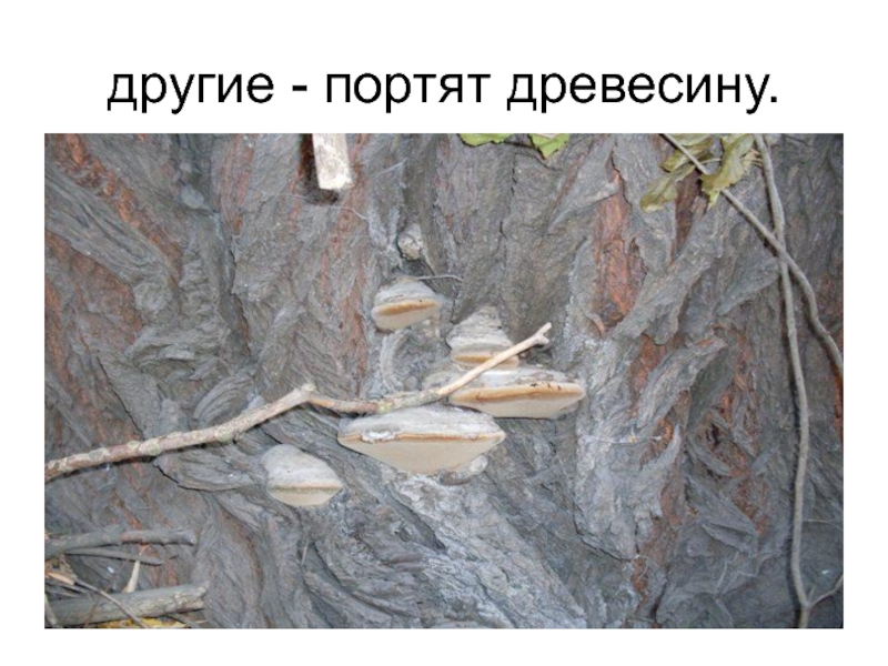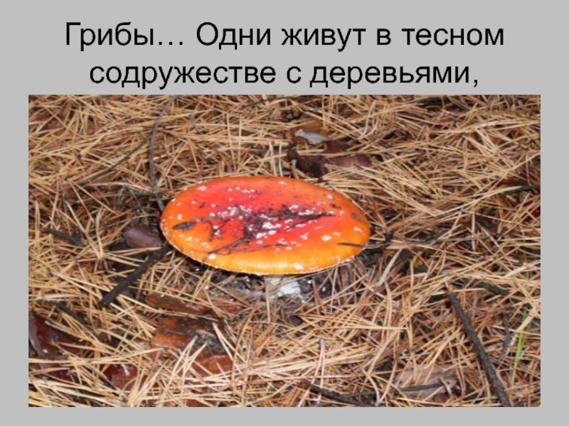 Слайд 6Грибы… Одни живут в тесном содружестве с деревьями,