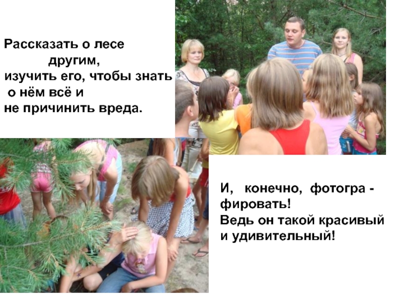 Рассказать о лесе       другим,изучить его, чтобы знать о нём всё и