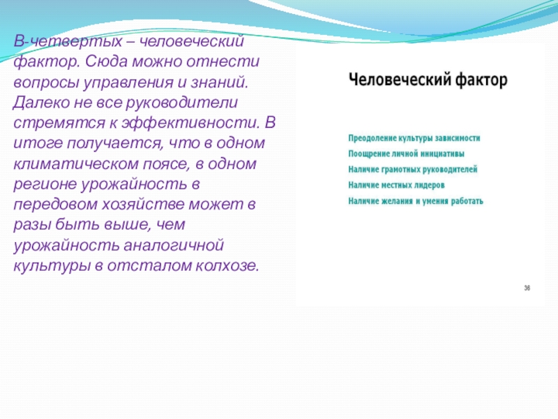 Слайд 7В-четвертых – человеческий фактор. Сюда можно отнести вопросы управления и знаний.