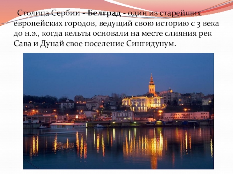 европейских городов, ведущий свою историю с 3 века до н.э., когда кельты основали на месте слияния рек Сава и Дунай свое поселение Сингидунум.