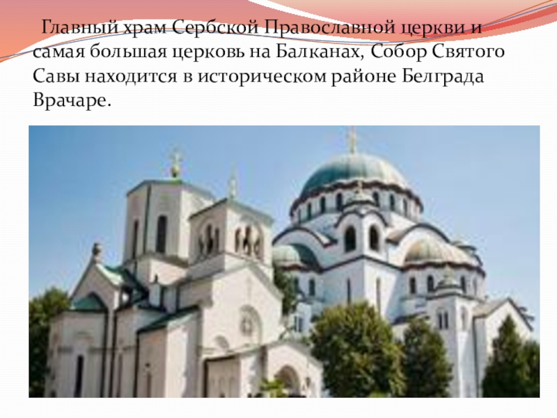 Слайд 6 Главный храм Сербской Православной церкви и самая большая