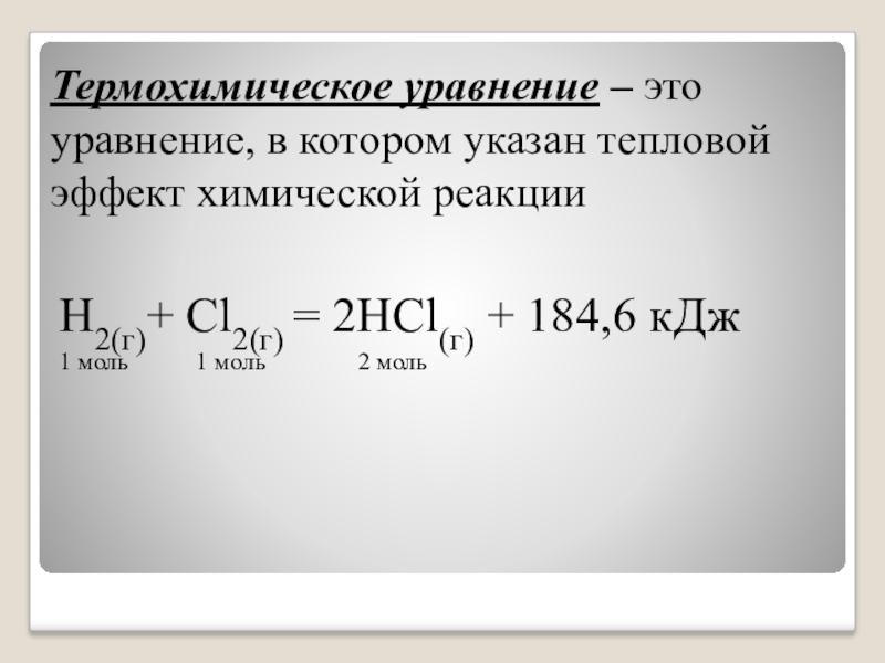 H2(г)+ Cl2(г) = 2HCl(г) + 184,6 кДж