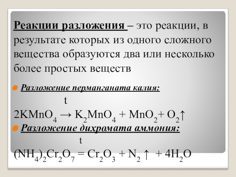 2KMnO4 → K2MnO4 + MnO2+ O2↑