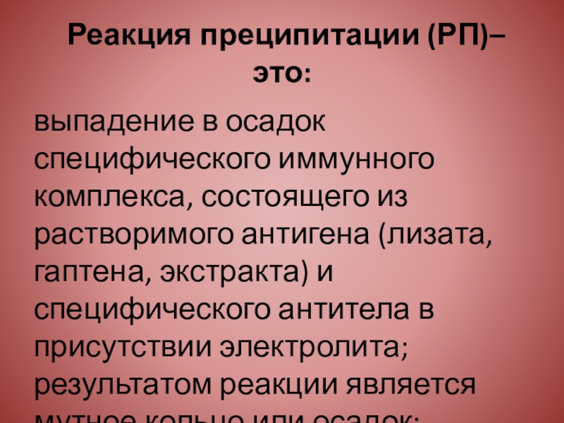 выпадение в осадок специфического иммунного комплекса, состоящего