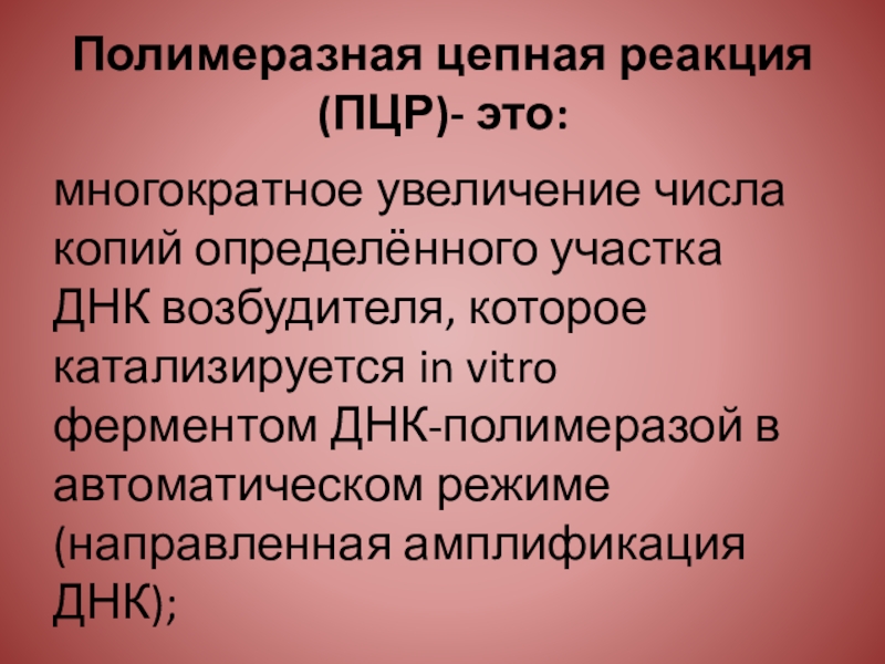 возбудителя, которое катализируется in vitro ферментом ДНК-полимеразой в автоматическом режиме (направленная амплификация ДНК);