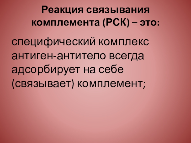 Слайд 11Реакция связывания комплемента (РСК) – это: