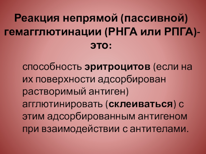 Слайд 8Реакция непрямой (пассивной) гемагглютинации (РНГА или РПГА)- это: