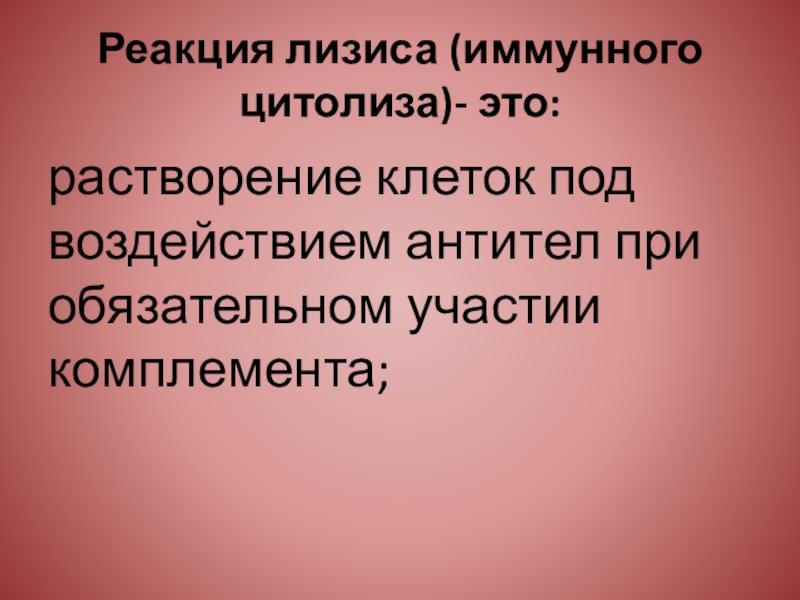 Слайд 10Реакция лизиса (иммунного цитолиза)- это: