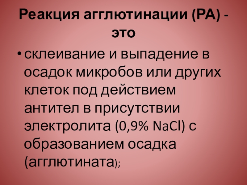 других клеток под действием антител в присутствии электролита (0,9% NaCl) с образованием осадка (агглютината);
