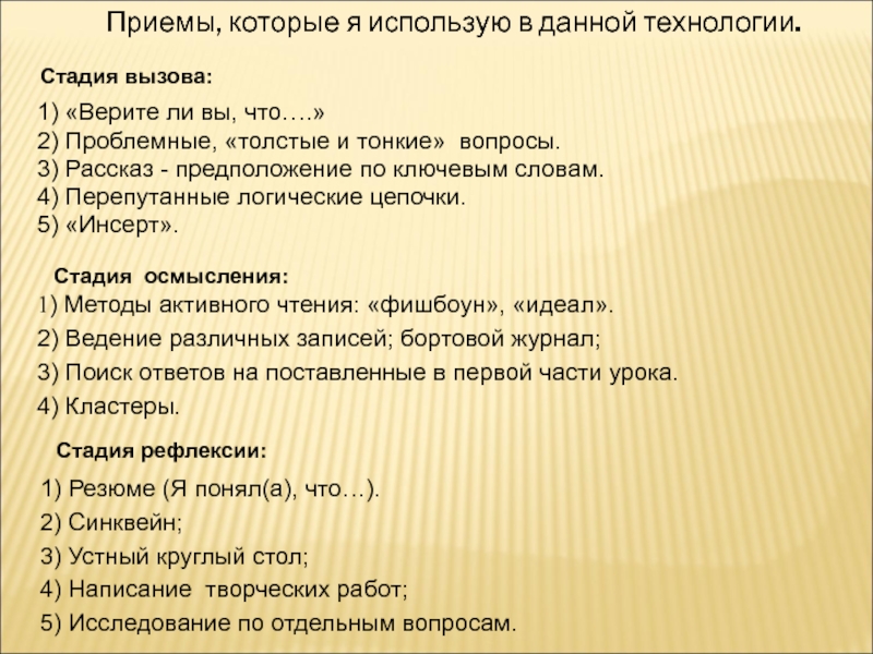 технология развития критического мышления через чтение и письмо (ТРКМЧП).