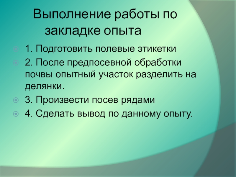 2. После предпосевной обработки почвы опытный участок разделить на делянки.