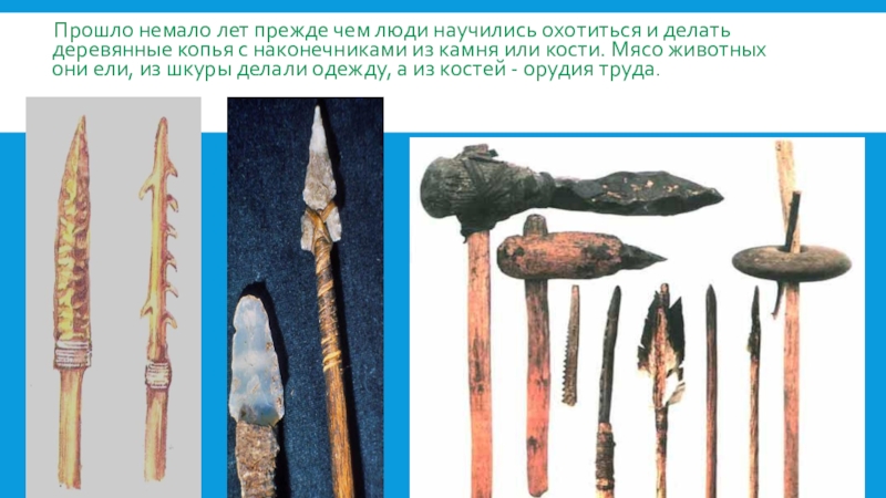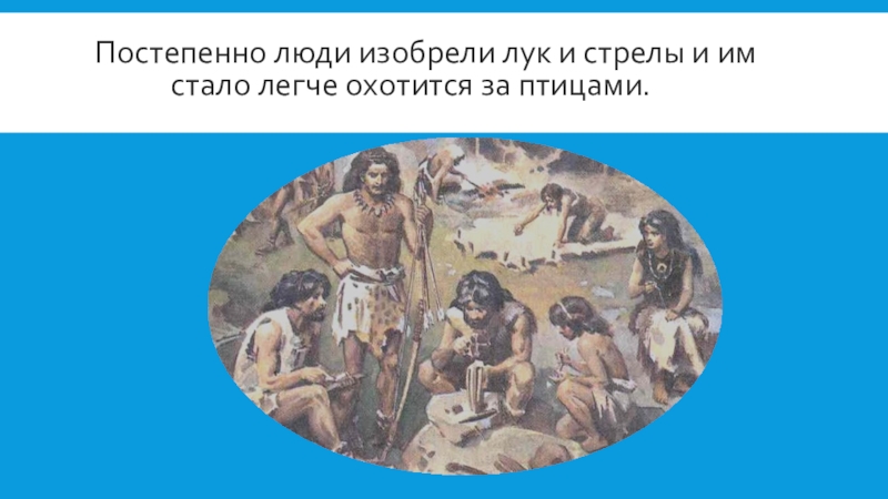 П Постепенно люди изобрели лук и стрелы и им стало легче охотится за птицами.
