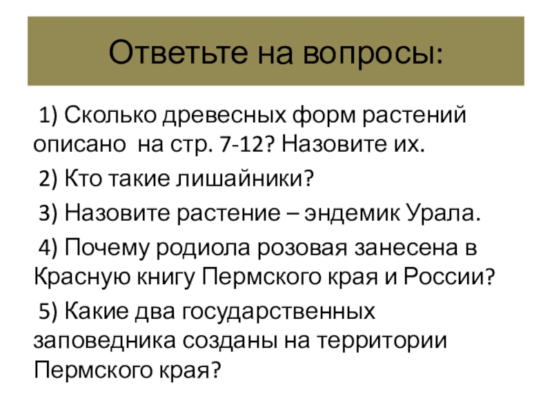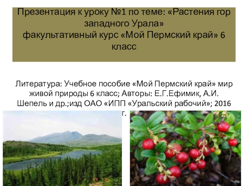 Литература: Учебное пособие «Мой Пермский край» мир живой природы 6 класс; Авторы: Е.Г.Ефимик, А.И.Шепель и др.;изд ОАО «ИПП «Уральский рабочий»; 2016 г.