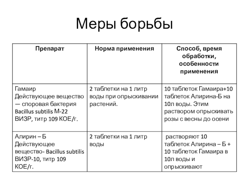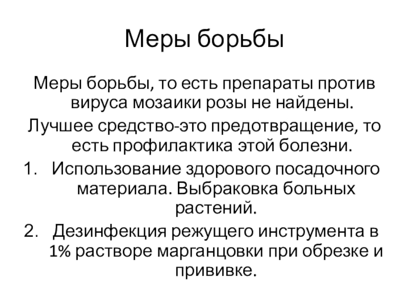 Меры борьбы, то есть препараты против вируса мозаики розы не