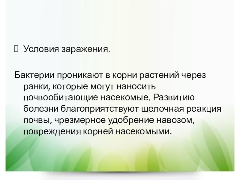 Бактерии проникают в корни растений через ранки, которые могут наносить
