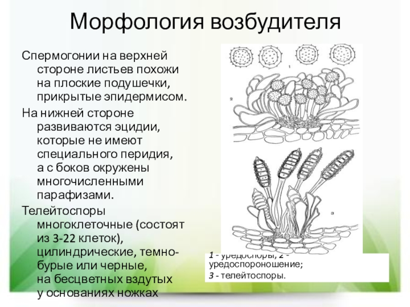 стороне развиваются эцидии, которые не имеют специального перидия, а с боков окружены многочисленными парафизами.