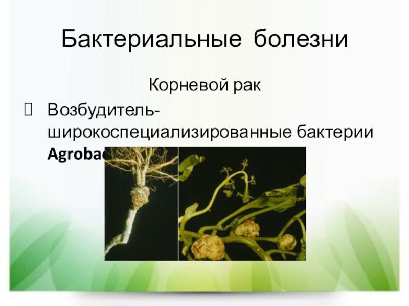 Возбудитель- широкоспециализированные бактерии Agrobacterium tumefaciens Conn