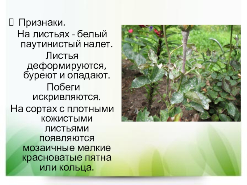 Возбудитель- гриб Sphaerotheca pannosa (Wallr.) Lev. (класс Плодосумчатые)