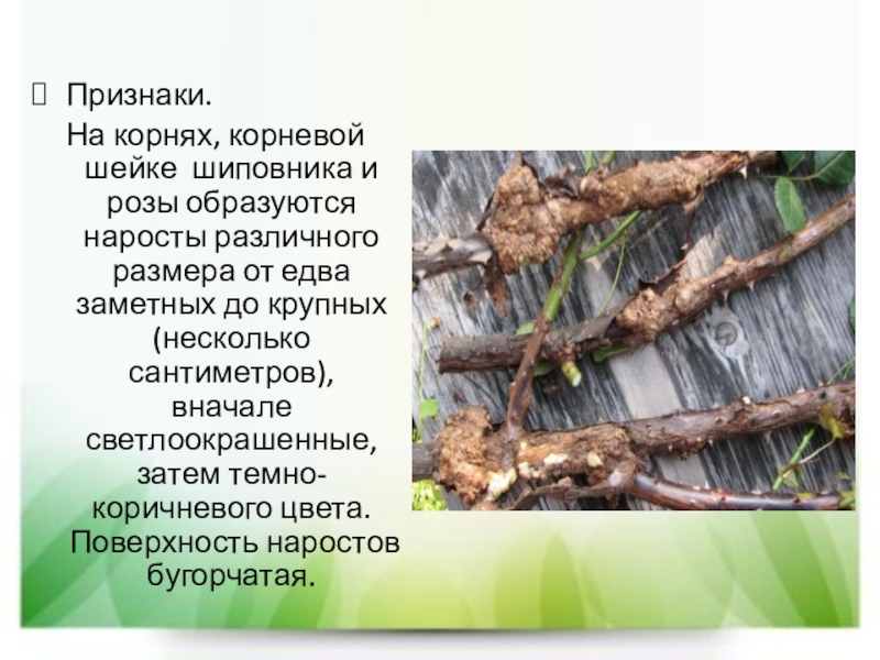 На корнях, корневой шейке шиповника и розы образуются наросты различного