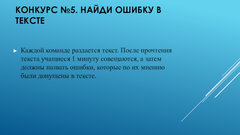Слайд 22Конкурс №5. Найди ошибку в тексте